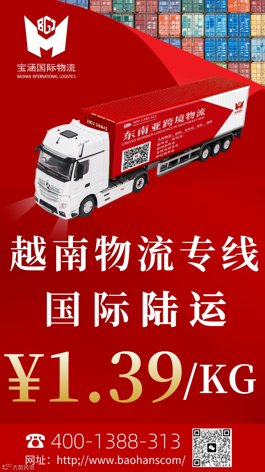 越南专线-国际陆运优惠特价1.39元/KG,狂飙的价格,只为请客户体验更优质的服务!