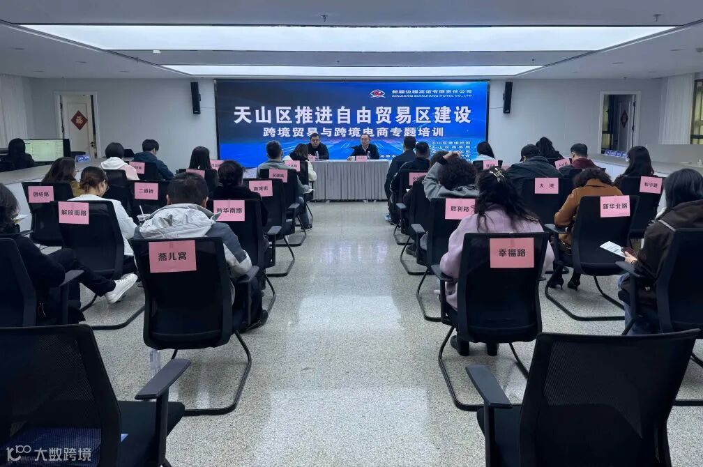 天山区发改委、民政局、市监局、税务局、商务局等政府职能部门代表,各街道外贸业务负责人、业务骨干,跨境电商企业代表及边疆宾馆业务骨干等40余人参加会议。