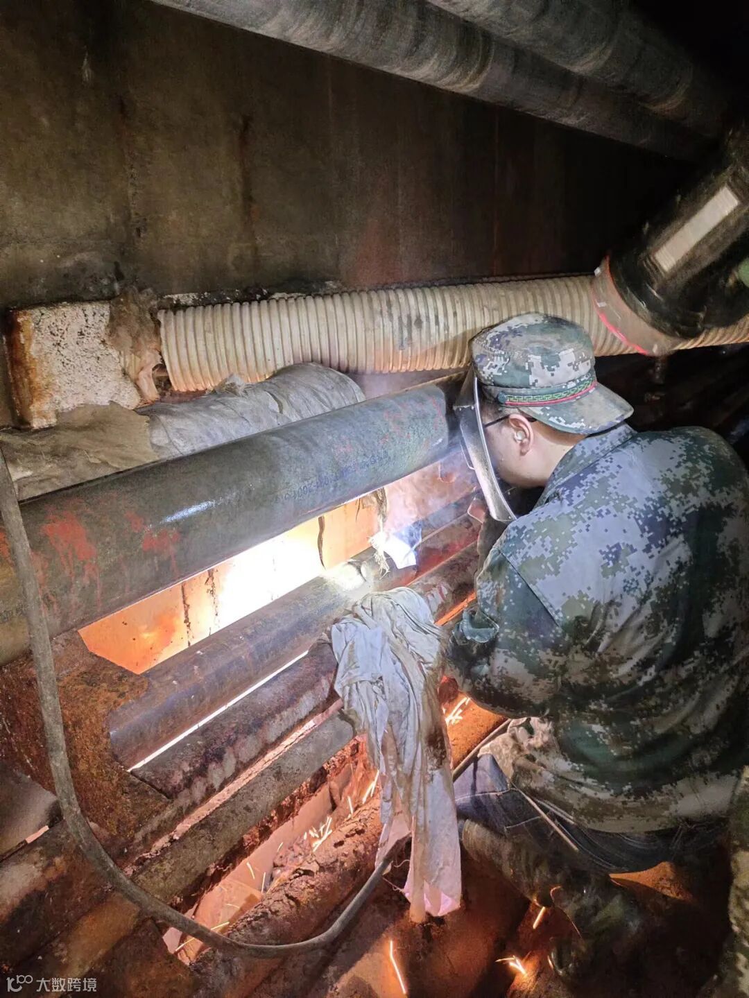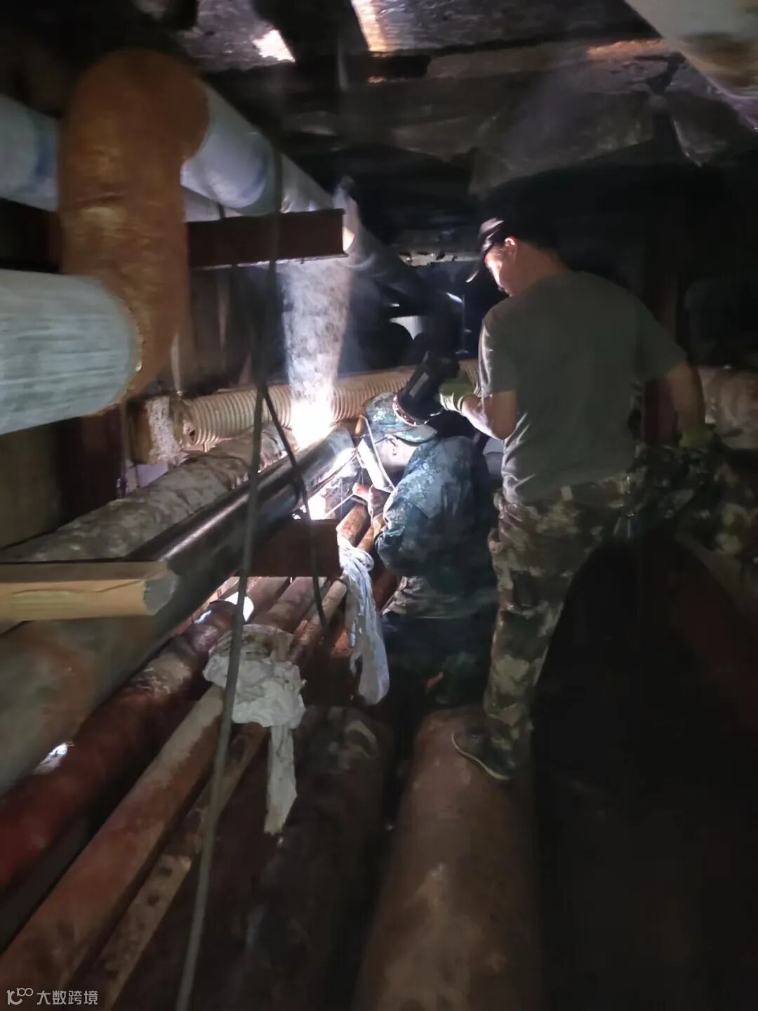 地下管沟内空间密闭,闷热潮湿,让人喘不过气,抢修人员片刻间都已浑身湿透,但是大家分工明确,有的进行排水作业、有的准备更换材料、有的连接焊接设备。经大家通力合作,在晚上8点45分恢复供水。抢修完成后,他们严肃的表情终于绽出笑容:“我们干得快一点,宾客用水就能早一点”。