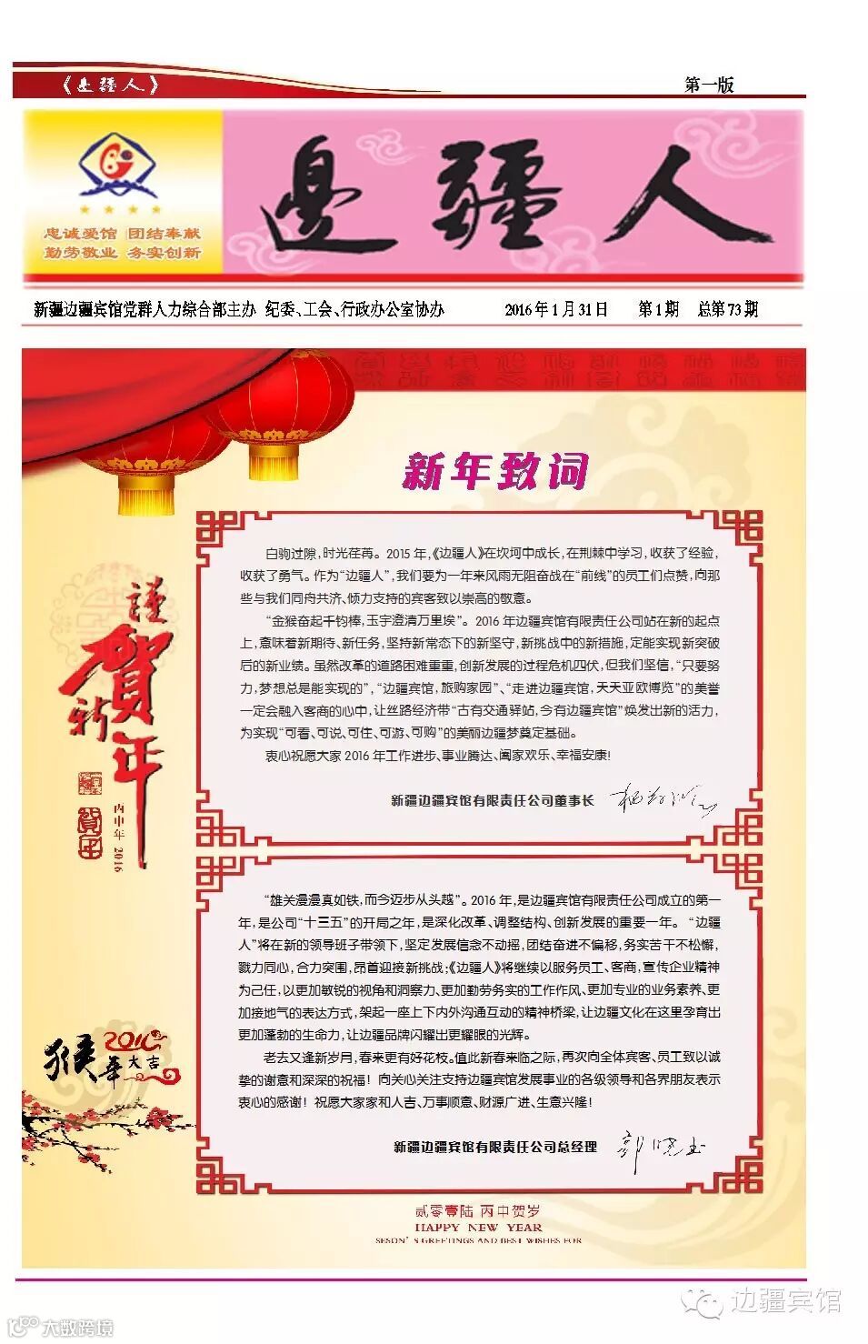 导读:《边疆人》公司简报,2016年第期电子版