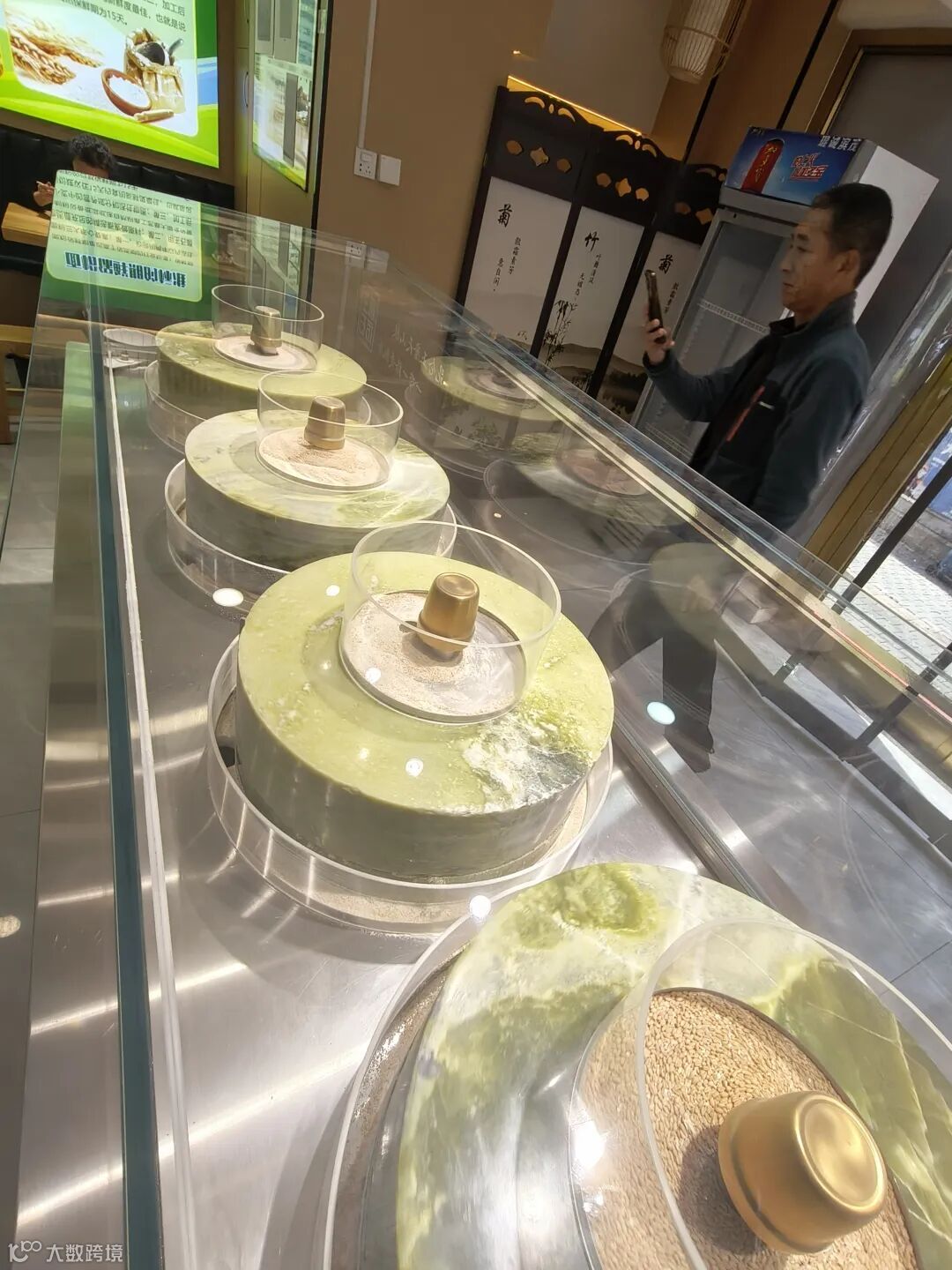 进入以后,看到了几个电子控制的磨盘,在那里转动,问了下商家,这是现场磨出来的面粉,然后用这种面粉去制作拌面,这种拌面我真的没吃过,一定要体验一下。