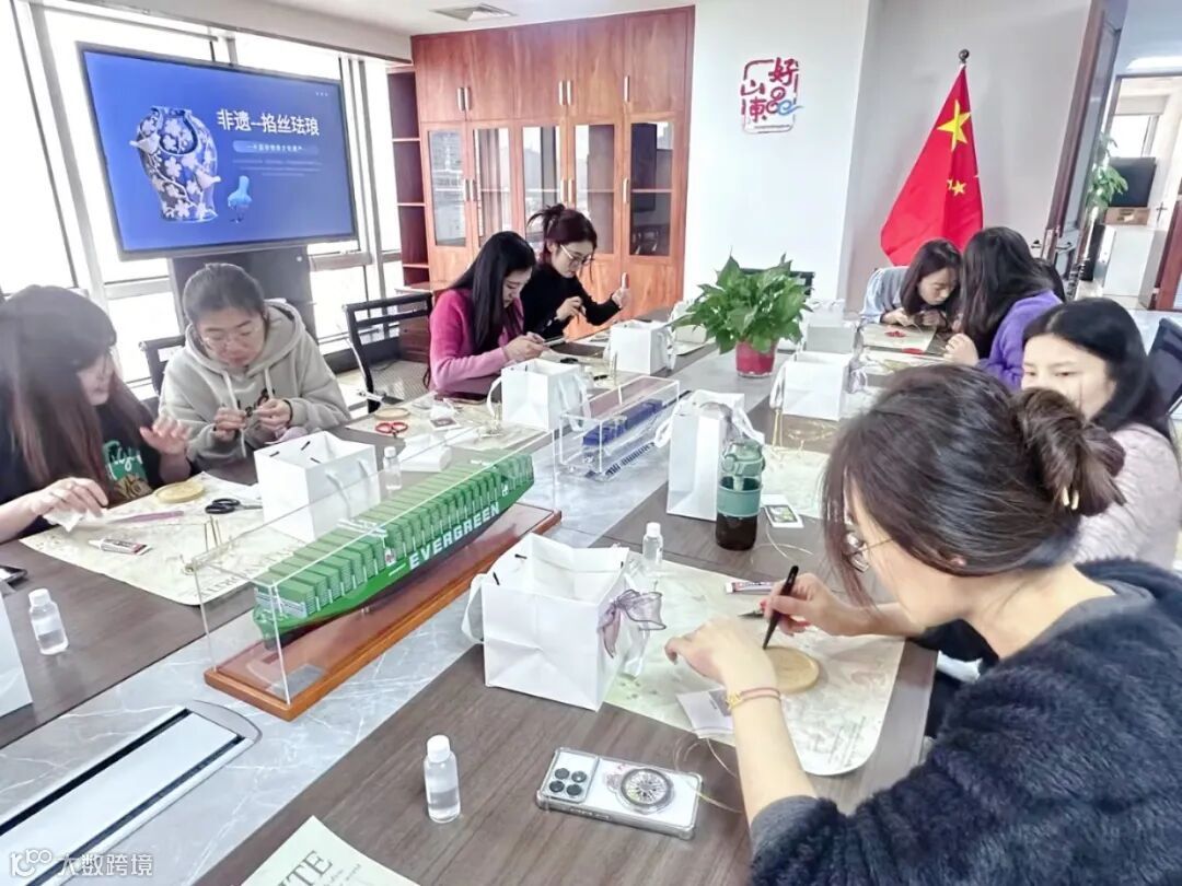 3月6日中午,公司会议室变身非遗工坊。由专业老师携掐丝珐琅工具亲临指导,从景泰蓝的历史渊源讲到现代创新应用。值此国际妇女节之际,公司特别策划掐丝珐琅工艺体验活动,让女性员工在金属与釉彩的交织中,感受传统工艺的温度与魅力。