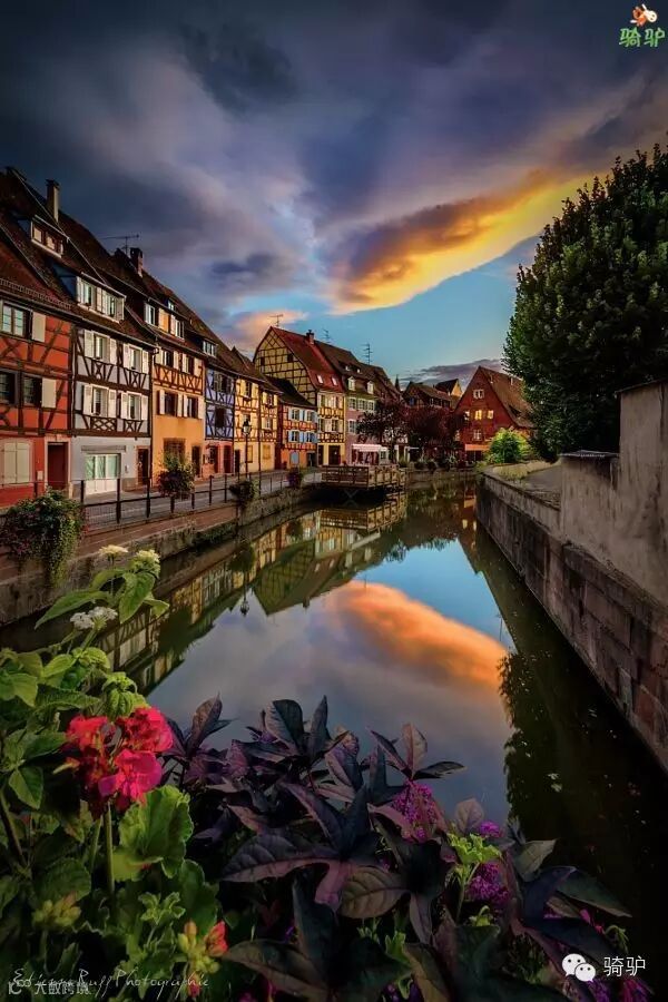 科尔马是法国最浪漫的地区之一,因其境内运河和花船而得名。从桥上可以看到以前船夫和洗衣店在水中的倒影,景色美丽。