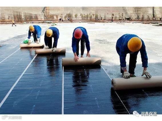 铺贴3mm厚沥青聚酯胎防水卷材。要求卷材粘接无空鼓,卷材搭接宽度80mm ,搭接边采用热熔法施工,无粘接不良现象。