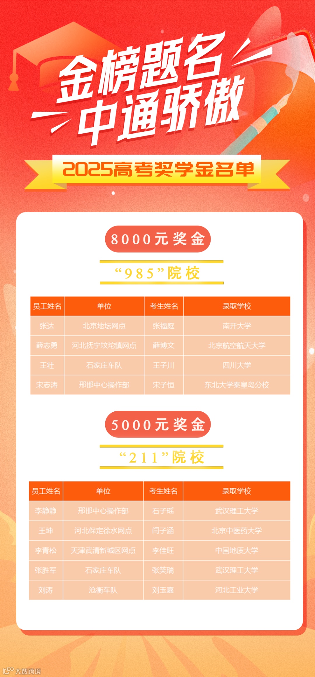 金榜题名· 中通骄傲