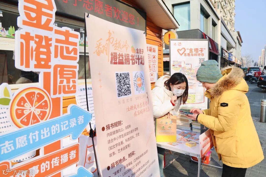 5日下午,记者来到朝外大街北侧的志愿者服务站。橙色的小屋外,两张桌子上齐齐整整摞着不少书,有童话、百科、散文,也有习题集,都是八九成新。