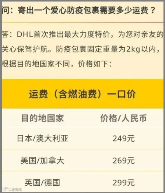 DHL没有正面回复!因此建议大家寄物资时,一定要事先跟快递公司客服确认清楚,咨询航班和当下清关情况,以确保快递顺利到达。