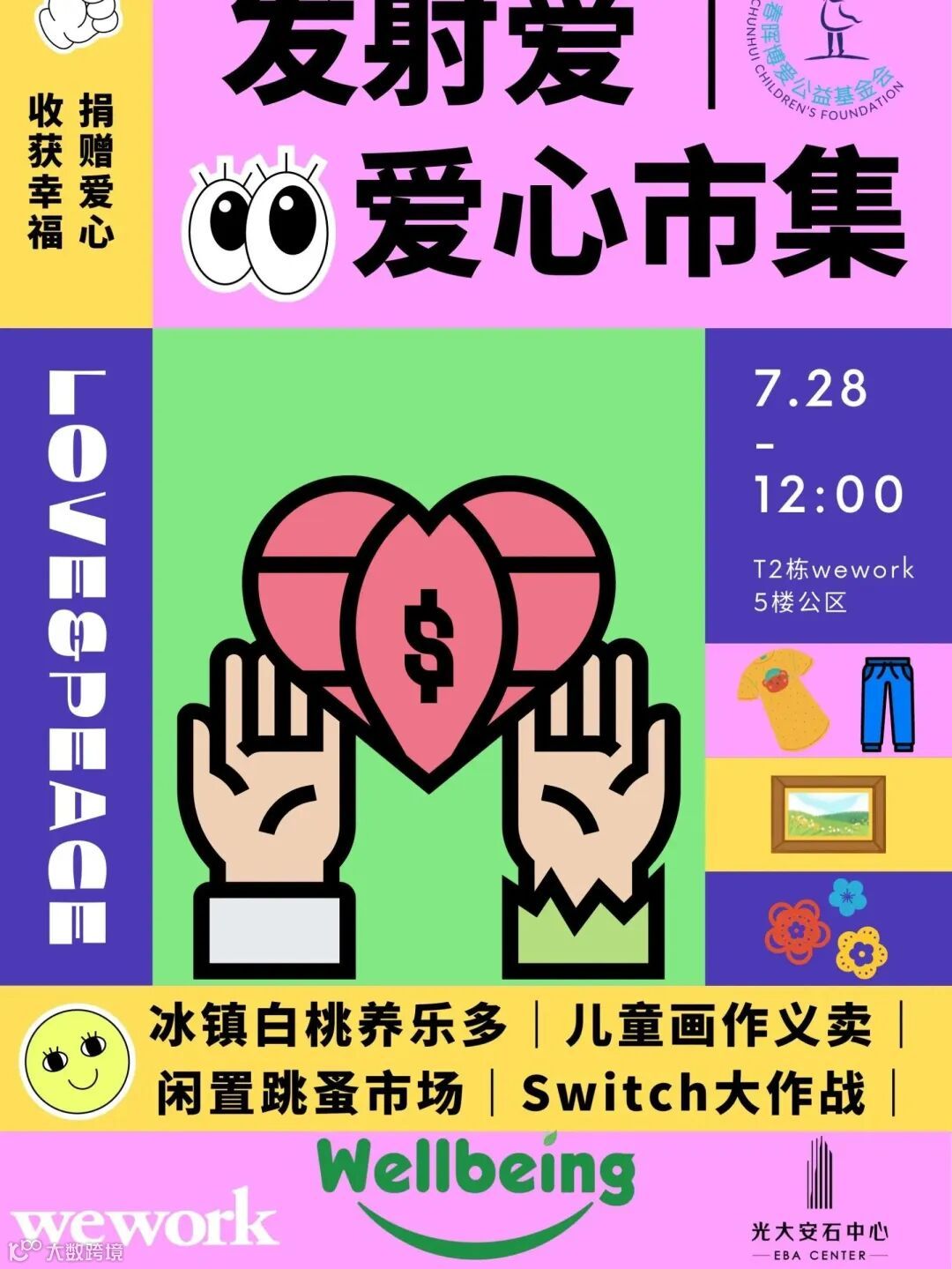 7月28日中午,由Wework联合春晖博爱公益基金会的爱心义卖市集活动,在上海办公室物业光大安石中心5楼公共区域拉开帷幕,旨在通过义买义卖方式筹集爱心善款,帮助缺乏亲情呵护的孩子们有机会在爱与陪伴中成长。