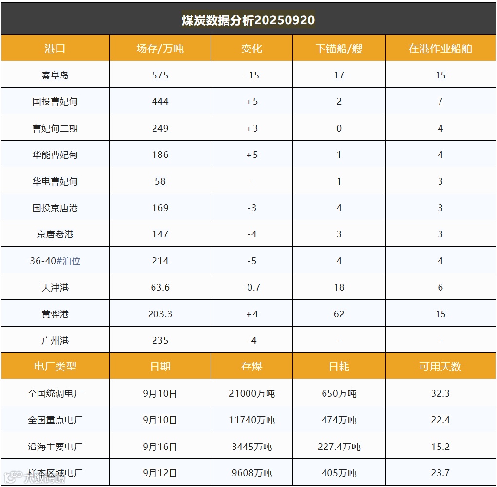 展望后期,尽管终端电厂库存仍处高位,且日耗逐步回落,但电厂已启动秋季补库,叠加非电行业需求稳定,对煤价形成一定支撑。随着假期临近,贸易商普遍对节前补库预期持乐观态度,预计煤价将延续震荡偏强走势。