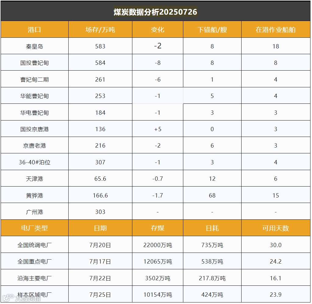截至7月26日,环渤海港口库存2756.2万吨,环比前一日减少18.4万吨,显示去库趋势。优质低硫煤种紧俏,叠加超产核查、降雨天气影响短期供应,贸易商看涨情绪浓厚,报价持续小幅上调。