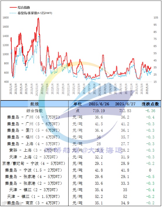 6月27日,环渤海动力煤价格稳中上行,中低卡优质煤种资源结构性短缺现象并未改善,贸易商捂货挺价情绪浓厚。下游采购积极性一般,对高价接受程度不高,多派船拉运长协,需求端支撑并不是十分强劲,港口煤价涨幅有放缓迹象。