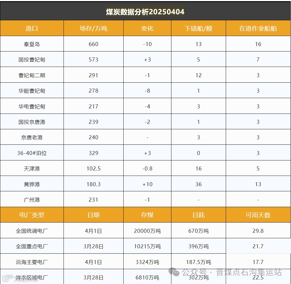 截至4月4日,环渤海港口库存降至3109.8万吨,降幅约10万吨,反映去库进程持续。