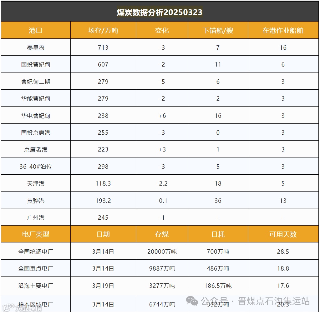 截至2025年3月23日,环渤海10港煤炭库存为3203.5万吨,较前一日减少11.3万吨。但总量仍处于3100万吨以上的历史高位,同比增幅显著。
