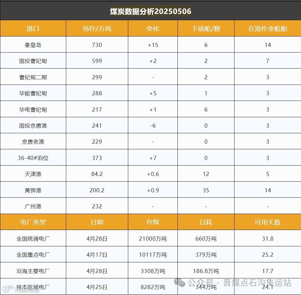 主产地产能释放充足,坑口煤价偏弱运行,煤矿出货缓慢,推动港口调入量维持高位。季节性淡季叠加五一假期,电厂日耗进一步走弱,终端补库意愿低迷,市场呈现"被动累库"特征。