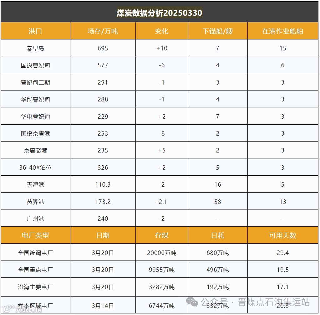 截至3月30日,环渤海港口库存3177.5万吨,环比仅减少1.1万吨,降幅微弱,仍处历史同期高位。尽管月底下游补库需求释放及进口煤收紧短暂提振市场情绪,但各环节(港口、电厂、产地)库存普遍高企,叠加非电行业需求复苏缓慢,市场“供强需弱”矛盾未实质性缓解。港口贸易商报价试探性上提更多反映短期心态波动,实际成交受制于下游压价意愿,煤价上行缺乏持续性基础。