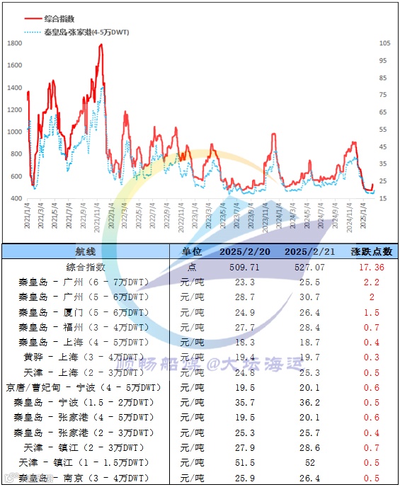 沿海运价逆势上涨:受电厂日耗恢复、两会前补库及进口煤性价比下降影响,华南方向货盘激增推高运价(单日涨幅0.4-2.2元/吨)。