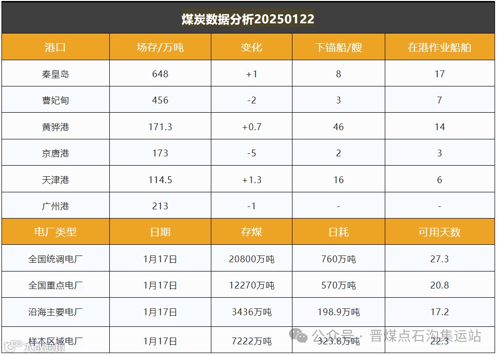 截止1月22日,环渤海5港库存为1562.8万吨,环比前一日环减少4万吨。随着春节脚步的临近,停产放假煤矿继续增加,产地供应收缩,市场煤存货减少。此外,华东、华中地区降温,民用电负荷不弱,优质中低卡市场煤出现阶段性供不应求。这种从预想的“暖冬”模式直接转至“速冻”模式,民生用电突然增加,尤其是北方部分区域需应对高强度的取暖需求,而华东地区气温也降至零摄氏度以下;部分电厂高度重视,督促旗下燃料公司在节前积极备货,可能会拉动煤价止跌反弹。