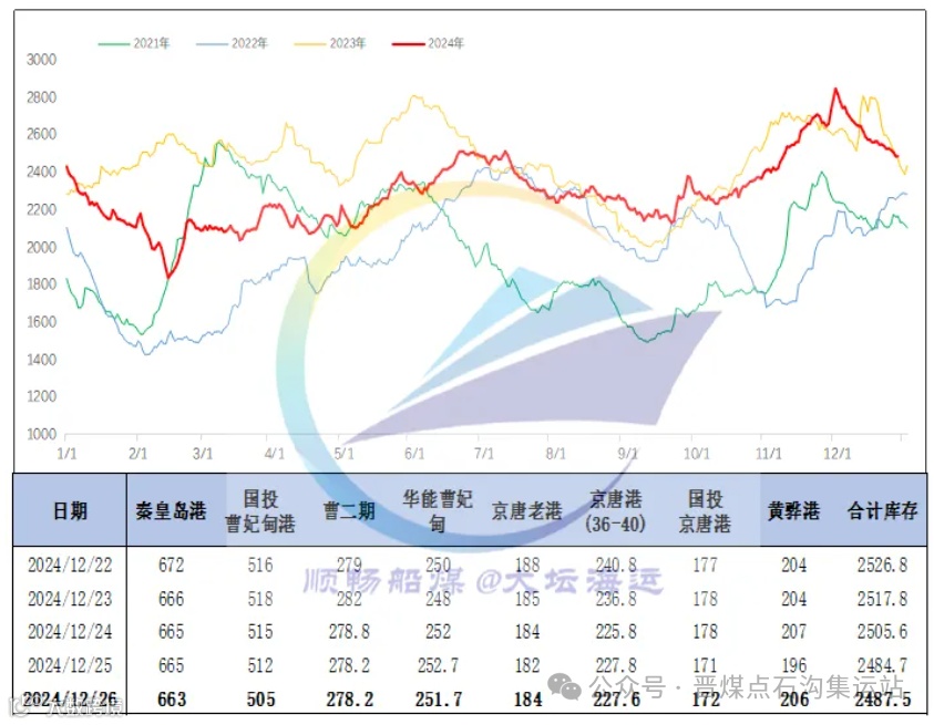 因电厂日耗增速缓慢、去库进程远不及预期等因素影响,下游北上采购也较为消极,港口调出量同步减少,港口去库进程有所放缓。元旦节前预计不会出现明显补库行情,短期煤炭市场仍将承压运行。