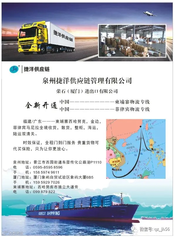 欢迎关注微信公众号:qz_jh56,或扫描以下二维码了解最新船期及市场动态如有不解可随时来电咨询:15859749611杨先生