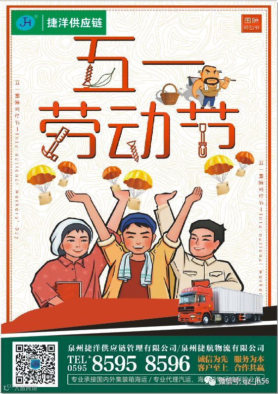 泉州捷洋供应链管理有限公司/泉州捷航物流有限公司恭祝所有新老客户朋友五一节快乐!劳动最光荣!