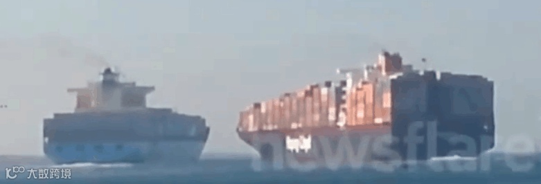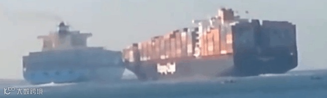 有消息称:当地时间6月16日,苏伊士运河两艘大型集装箱轮船相撞。