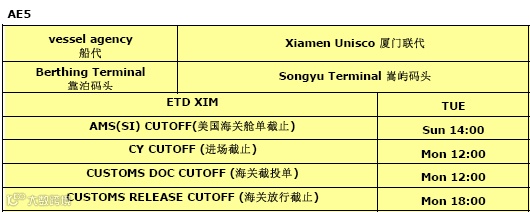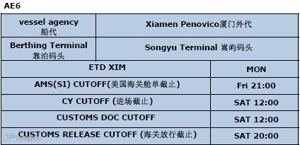 MAERSK:MAERSK每周提供2班船到英国,分别是AE5到SOUTHAMTPON,FELIXSTOWE,还有AE6到FELIXSTOWE,具体的操作时间如下。