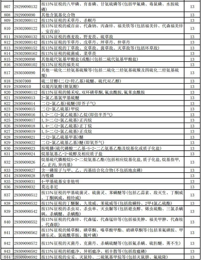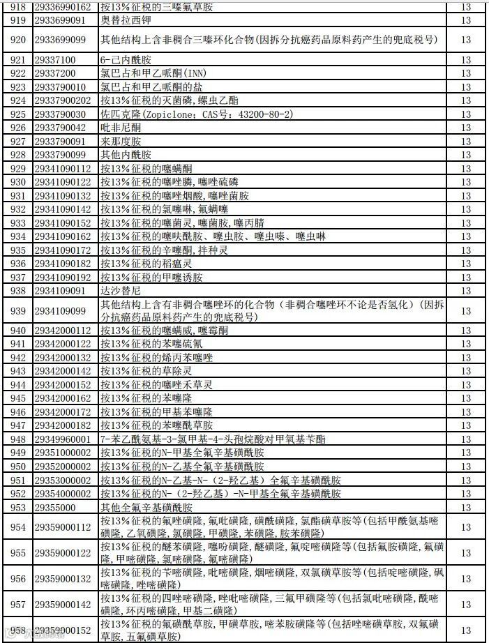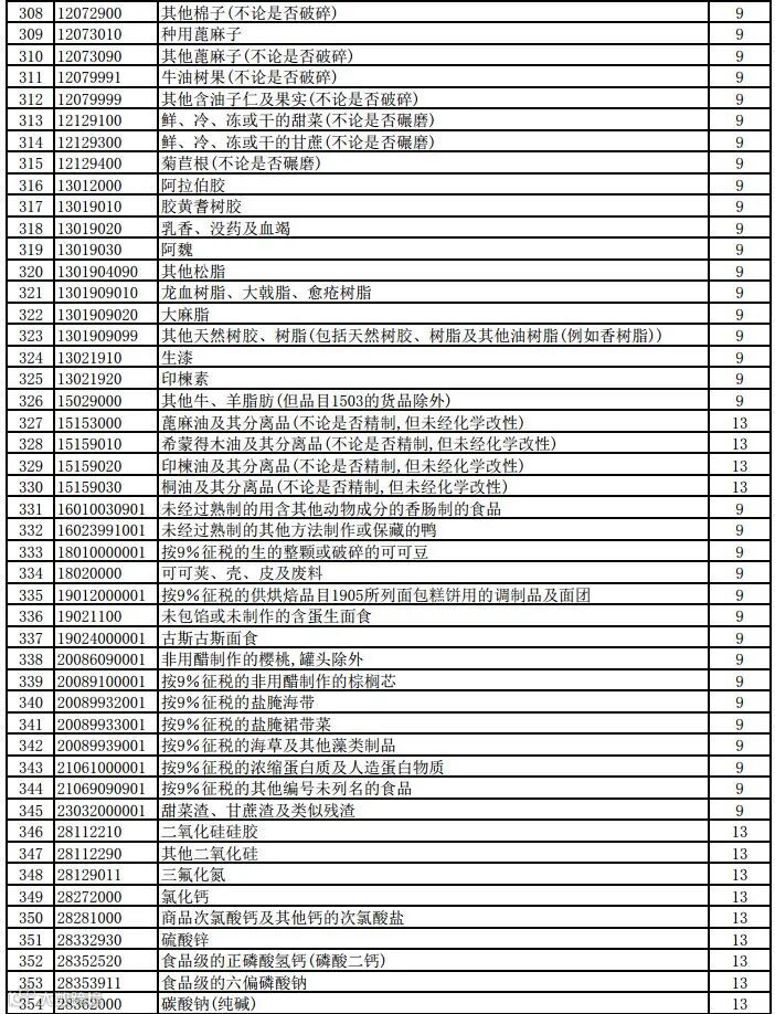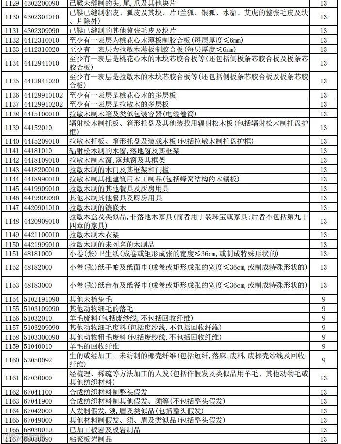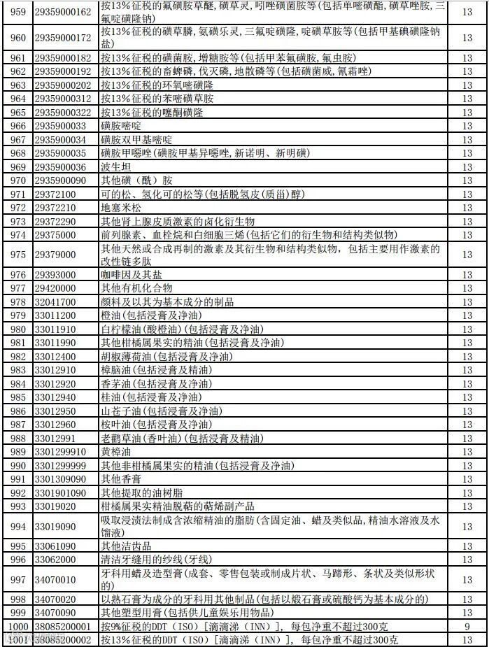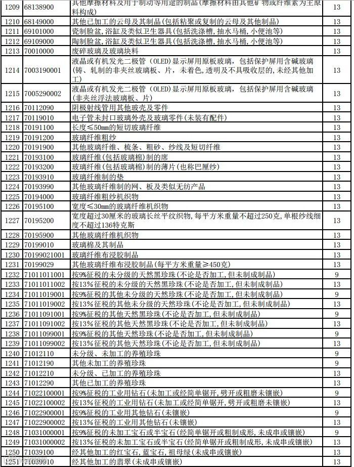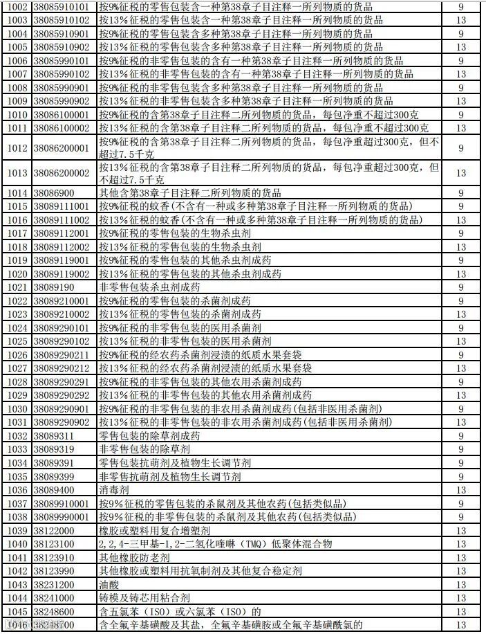 一、将瓷制卫生器具等1084项产品出口退税率提高至13%;将植物生长调节剂等380项产品出口退税率提高至9%。具体产品清单见附件。