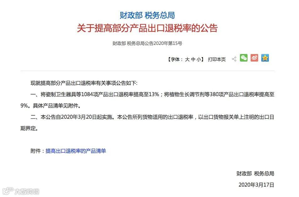 3月17日,国家财政部、税务总局联合发布了关于提高部分产品出口退税率的公告。