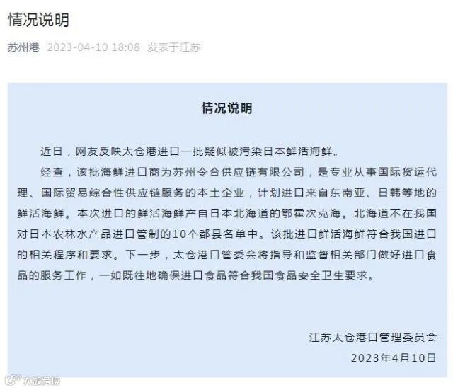 经查,该批海鲜进口商为苏州令合供应链有限公司,是专业从事国际货运代理、国际贸易综合性供应链服务的本土企业,计划进口来自东南亚、日韩等地的鲜活海鲜。本次进口的鲜活海鲜产自日本北海道的鄂霍次克海。北海道不在我国对日本农林水产品进口管制的10个都县名单中。该批进口鲜活海鲜符合我国进口的相关程序和要求。下一步,太仓港口管委会将指导和监督相关部门做好进口食品的服务工作,一如既往地确保进口食品符合我国食品安全卫生要求。