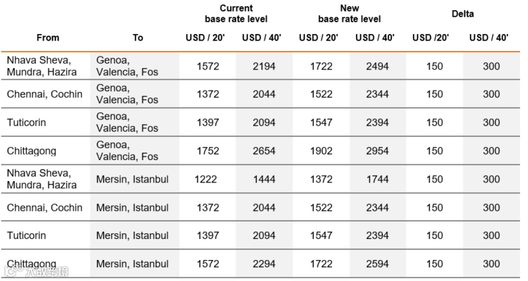 从亚洲到欧洲和地中海的新价格,该价格将从2021年1月1日起生效。