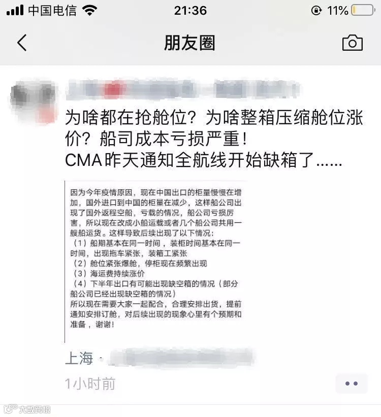 由于中国率先从疫情影响中恢复生产,目前从给中国出口的柜量慢慢在增加,而国外进口到中国的柜量正在减少,导致船公司出现了国外返程空船、亏载的情况,船公司亏损厉害,所以现在改成小船运载或几个船公司共用一艘船运货。这样导致后续出现了以下情况: