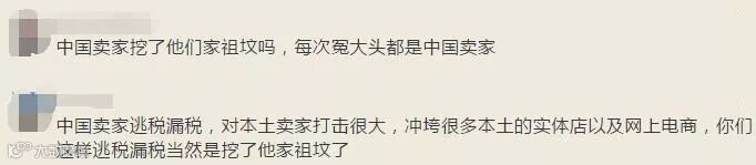 有人说:“电商卖家逃税漏税,对本土卖家打击很大,冲垮很多本土的实体店以及网上电商,你们这样逃税漏税当然是挖了他家ZUFEN了。”