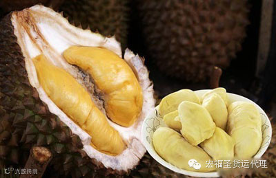 榴莲叶片长圆,顶端较尖,聚伞花序,花色淡黄,果实足球大小,果皮坚实,密生三角形刺,果肉是由假种皮的肉包组成,肉色淡黄,粘性多汁,头一次食用榴莲时,那种异常的气味可使许多人“望而却步”,但是,也有许多人自从吃了第一口以后,就会被榴莲那种特殊的回味和质感所吸引。