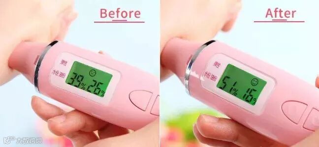 涂抹前手背水分含量39%,