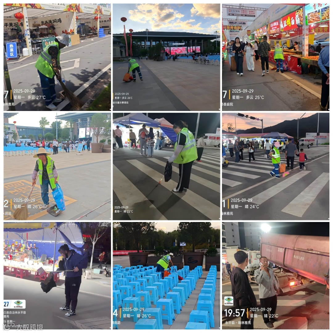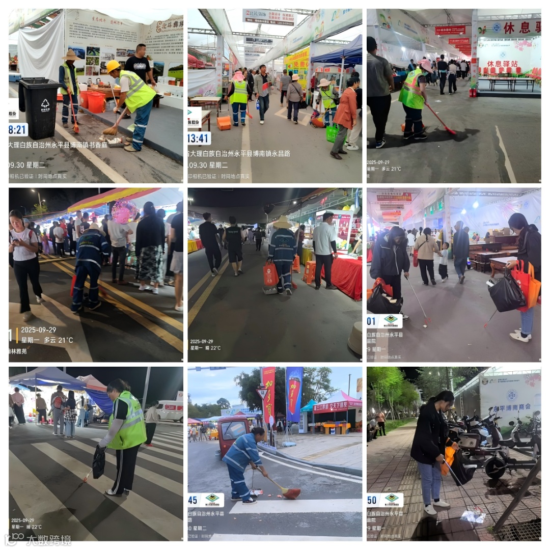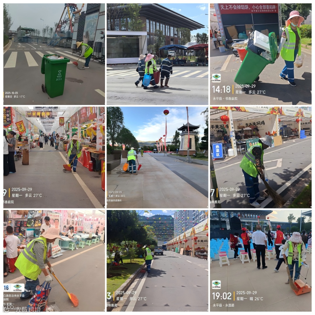 9月29日,第十届博南文化节暨中华黄焖鸡美食节如期而至,为确保活动期间环境卫生干净整洁,永平县顺丰洱海环保科技有限责任公司高度重视,多措并举,合理调配保洁人员、加大道路清扫保洁力度,全方位落实活动期间环境卫生保障工作。