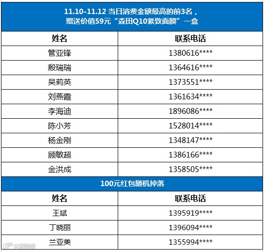 双11第二轮中奖名单,