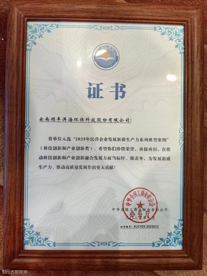 大会汇聚了来自全国的知名民营企业代表共探发展路径,大会还发布了“2025年全国民营企业发展新质生产力科技创新和产业创新典型案例”,云南顺丰洱海环保科技股份有限公司获此殊荣!是云南省唯一上榜的企业!!