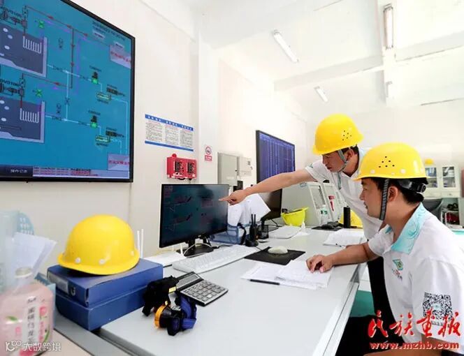 顺丰洱海环保公司员工在天然气工程控制室查看设备情况。