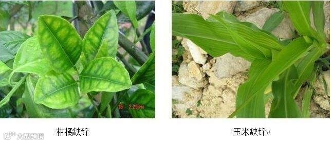 表现部位:叶片。危害表现:植物缺锌时,生长受抑制,尤其是节间生长严重受阻,并表现出叶片的脉间失绿或白化。