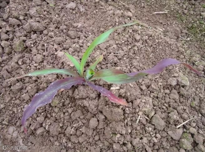 缺磷时,老叶先受影响,特别是低温时,缺磷植株常见发紫或发红,茎杆呈紫红色,失去光泽。
