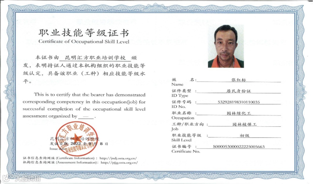 清晨6点,张红标就带好工具穿梭于自己的责任区,开始了一天的绿化养护工作。修剪、育苗、打药、除草、补植补种、清理水池等工作他都能按质按量的完成。此外,他还参加了“绿化工专业技能培训班”来提升自己的技能。经过认真、耐心的学习,他也最终通过了理论考试和现场实操考核,取得了职业技能资格证书。