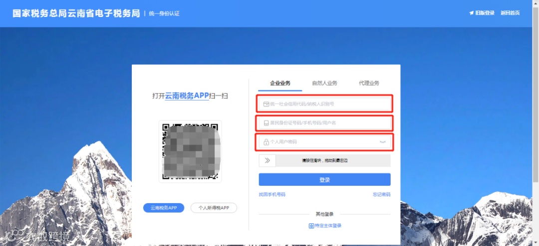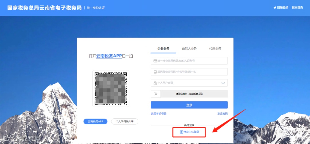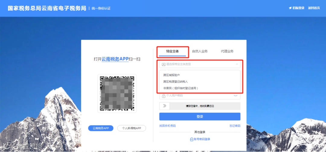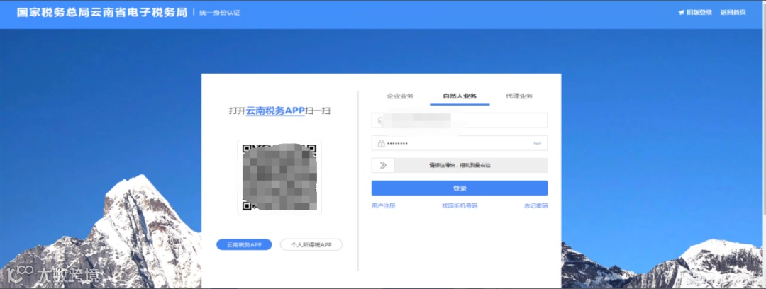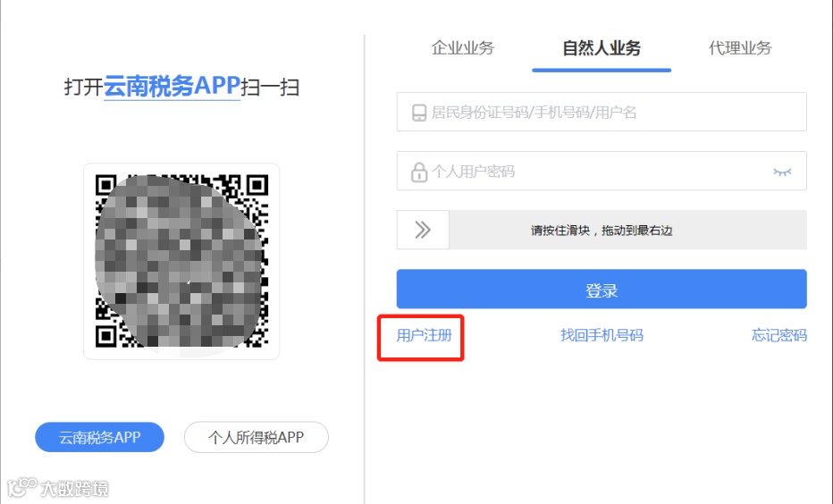 之前未注册过自然人用户的纳税人、缴费人先进行用户注册;已注册过的直接登录。