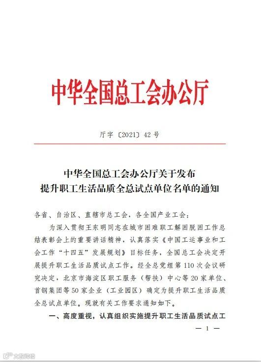 近日,中华全国总工会办公厅印发《中华全国总工会办公厅关于发布提升职工生活品质全总试点单位名单的通知》,全国50家企业被中华全国总工会评为“企业提升职工生活品质塑造幸福生活环境全总试点单位”,云南顺丰洱海环保科技股份有限公司是云南省唯一一家入选企业。