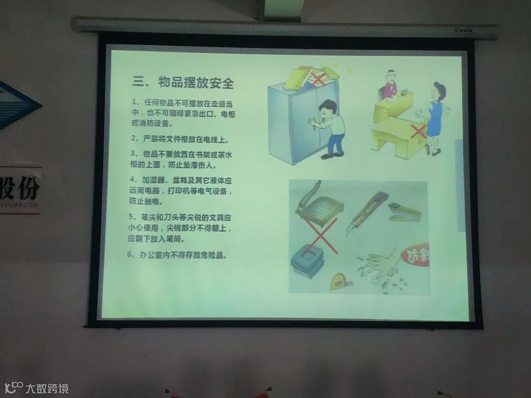 公司培训讲师向与会人员详细的讲解了消防、交通、客户入场参观、业务实习、商务谈判、日常办公等方面的安全知识、标准化操作规程以及在遇意外突发情况的科学处理、处置措施。