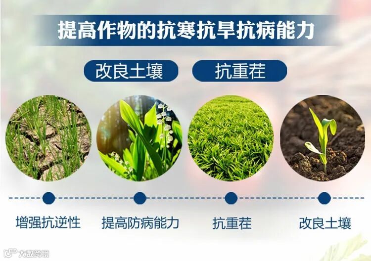 促进根系生产,加强根系活力,使作物具有良好长势,提高作物产量,改善作物品质。