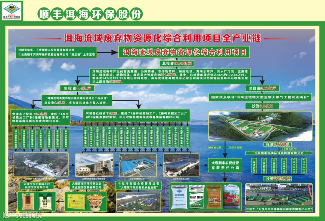 云南顺丰洱海环保科技股份有限公司(837298),是大理州首家新三板挂牌上市企业。是集科研、有机肥料生产、环保设备研发、有机废弃物资源化利用、生物质清洁能源及有机农业开发、现代精品农业庄园、销售、物流、旅游为一体的综合型企业。