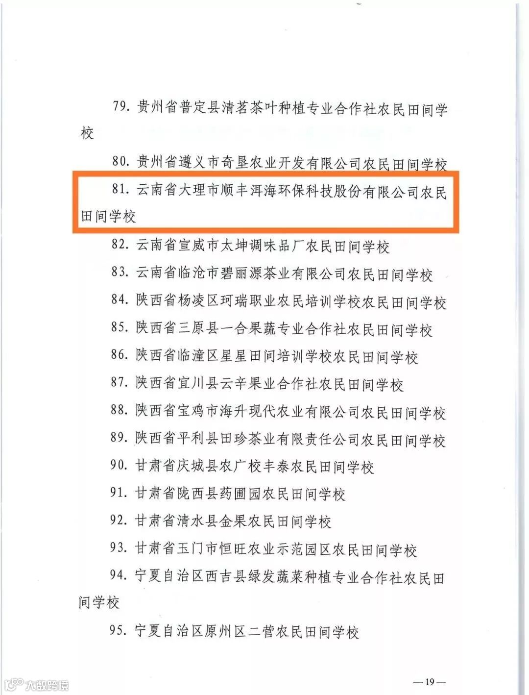 云南顺丰洱海环保科技股份有限公司目前拥有全国农化服务中心,农民生态种植培训教育中心以及生态种植示范基地等实训教育基地。公司先后与大理州农广校、大理州农科院、云南农业大学、云南省农科院、中国农业大学、中国农科院等科研院所建立了长期的“产—学—研”合作机制。