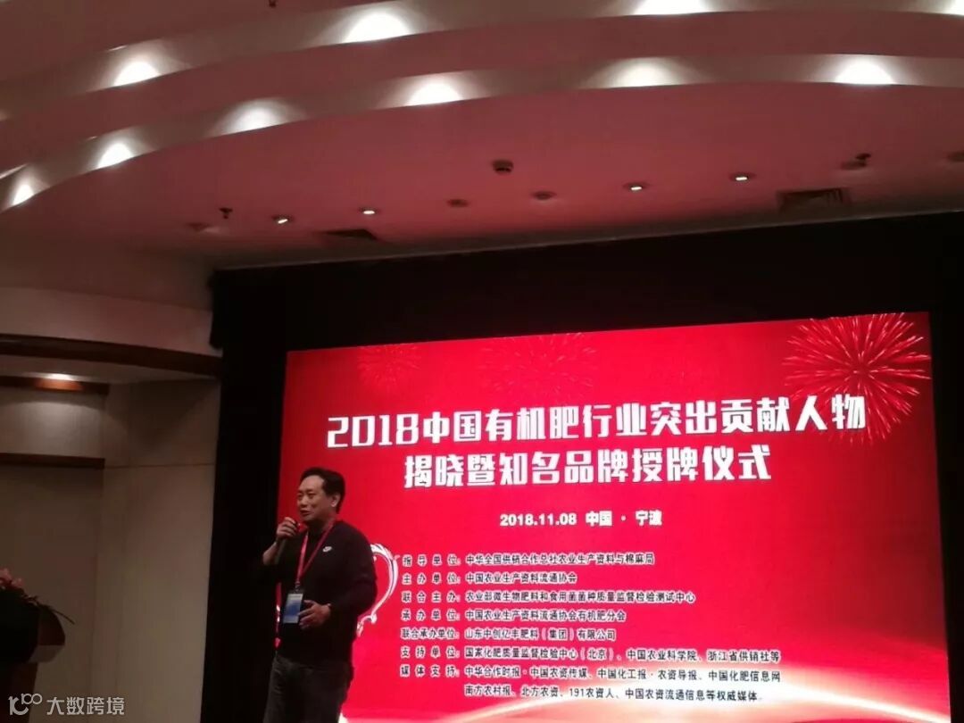 11月8日,“2018中国有机肥行业突出贡献人物暨知名品牌推选”颁奖典礼在浙江宁波南苑饭店举行。