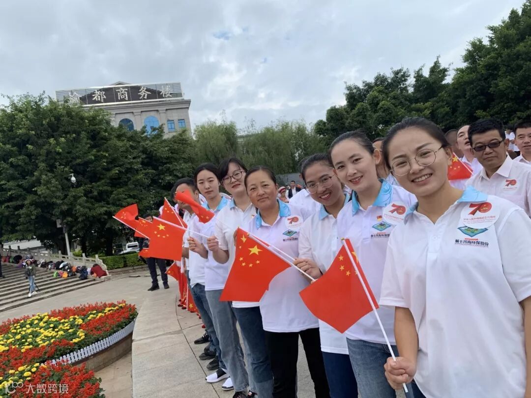 云南顺丰洱海环保科技股份有限公司职工高举鲜艳的五星红旗,在大理市明珠广场、云南顺丰洱海环保科技股份有限公司唱响《我和我的祖国》,通过歌声庆祝中华人民共和国成立70周年,歌颂伟大祖国的壮丽与美好,一声声“我爱您,祖国”来表达心中的爱国情怀。