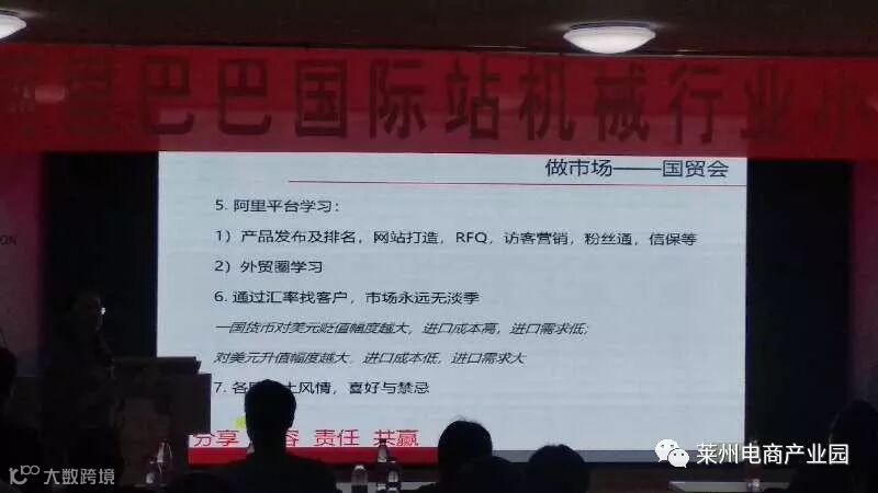 9月18日下午2点,阿里巴巴国际站机械行业小二莱州客户见面会在莱州电商产业园举办,参加会议的是来自莱州各镇街的机械行业商家,大家首次集结,是为了体验“大数据反哺的订单贸易”,聆听行业小二用数据分析海外买家市场,会议期间精彩纷呈、掌声不断。